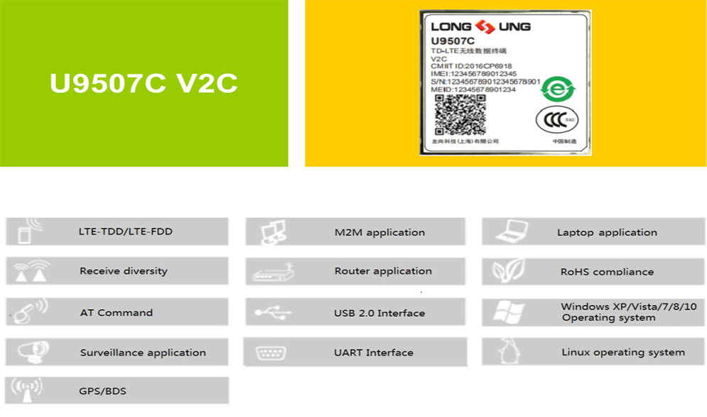 U9507C V2C 是long8国际技术推出的一款 Open linux LTE Cat4 无线通信模块,内置丰富的网络协议,集成多